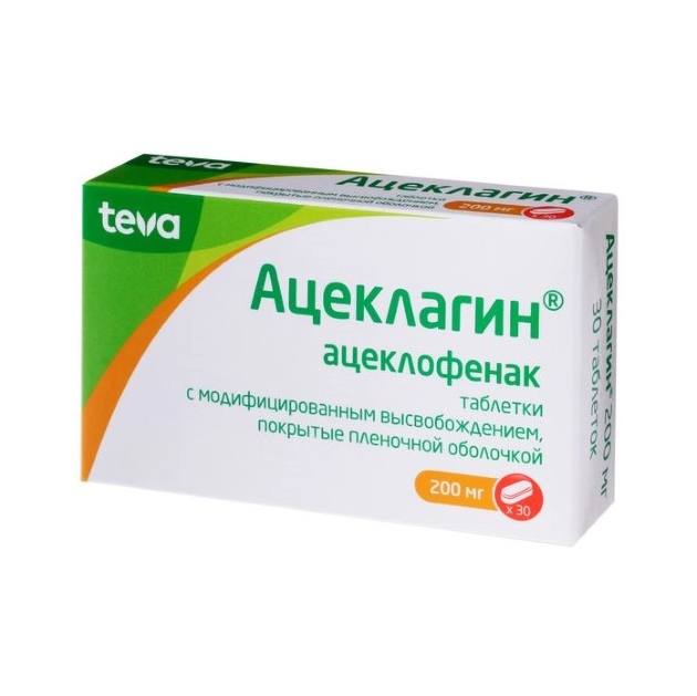 Ацеклагин таблетки с модифицированным высвобождением покрытые плёночной оболочкой 200мг №30