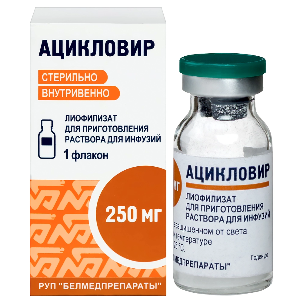 Ацикловир лиофилизат для приготовления раствора для инфузий 250мг флакон №1