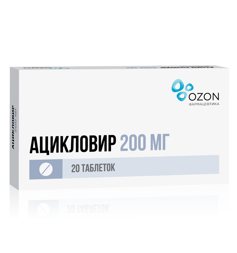 Действующее вещество: ацикловир в пересчёте на безводное вещество — 200,00 мг.