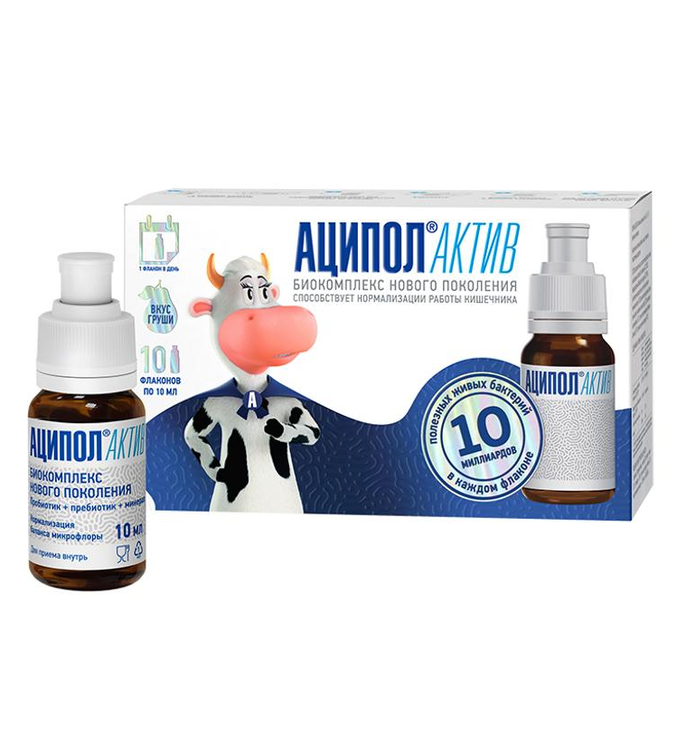 Суспензия «Аципол® Актив» рекомендуется в качестве биологически активной добавки к пище – дополнительного источника пробиотических микроорганизмов (лактобактерий и бифидобактерий), цинка, инулина.