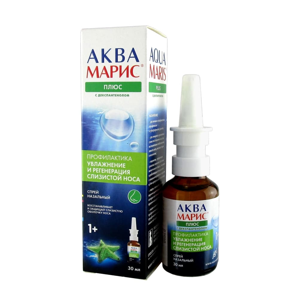 Аква Марис® Плюс представляет собой стерильный изотонический раствор, содержащий в своём составе морскую воду и декспантенол.
