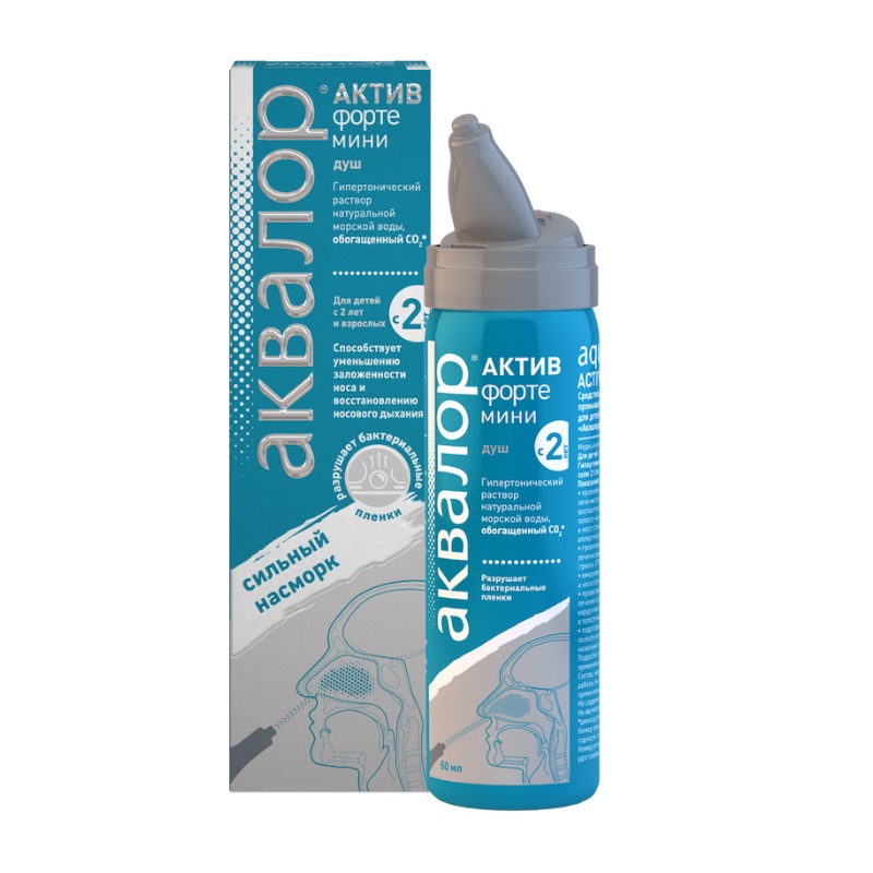 Аквалор актив форте мини средство для орошения и промывания полости носа для детей и взрослых 50мл