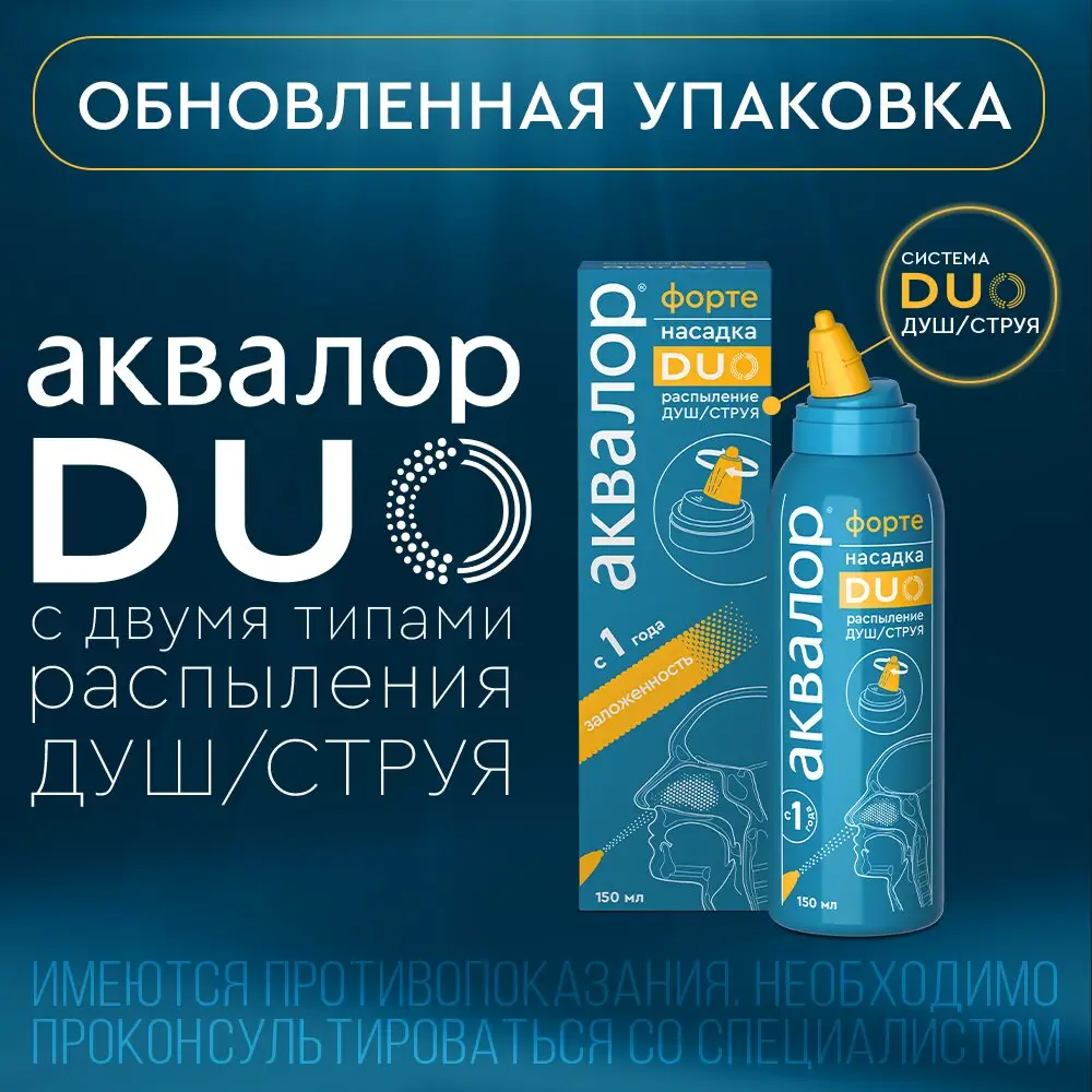 Аквалор форте DUO душ/струя средство для орошения и промывания полости носа 150мл