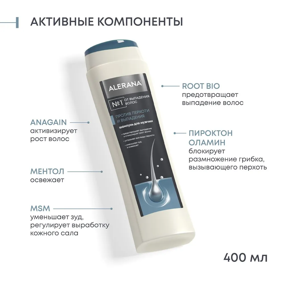 Алерана шампунь для мужчин 2в1 против перхоти и выпадения 400мл
