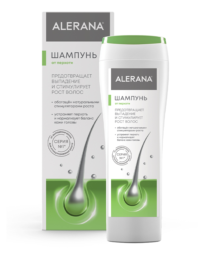 Шампунь ALERANA® рекомендован для устранения перхоти, восстановления нормального баланса кожи головы и укрепления ослабленных волос.