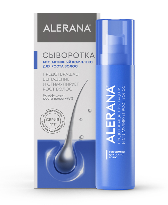 Несмываемая сыворотка ALERANA для стимулирования роста и оздоровления ослабленных волос. В состав сыворотки входит комбинация натуральных компонентов с доказанной эффективностью действия, которая: