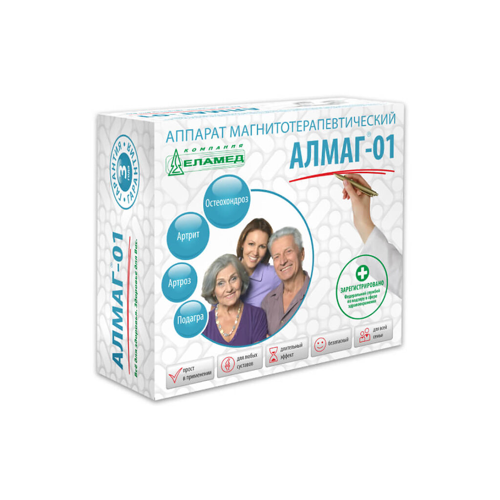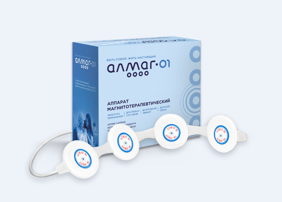 Применяется в лечебно-профилактических учреждениях более 15 лет. АЛМАГ-01: эффективность, проверенная временем. Множество клинических испытаний подтвердили эффективность аппарата при лечении широкого спектра заболеваний. Алмаг обладает высокой медицинской результативностью за счет импульсного магнитного поля. В зависимости от стадии заболевания улучшение наступает или с первых сеансов применения или после курсового воздействия.