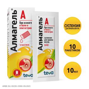 Алмагель А суспензия для приема внутрь пакетики 10мл №10
