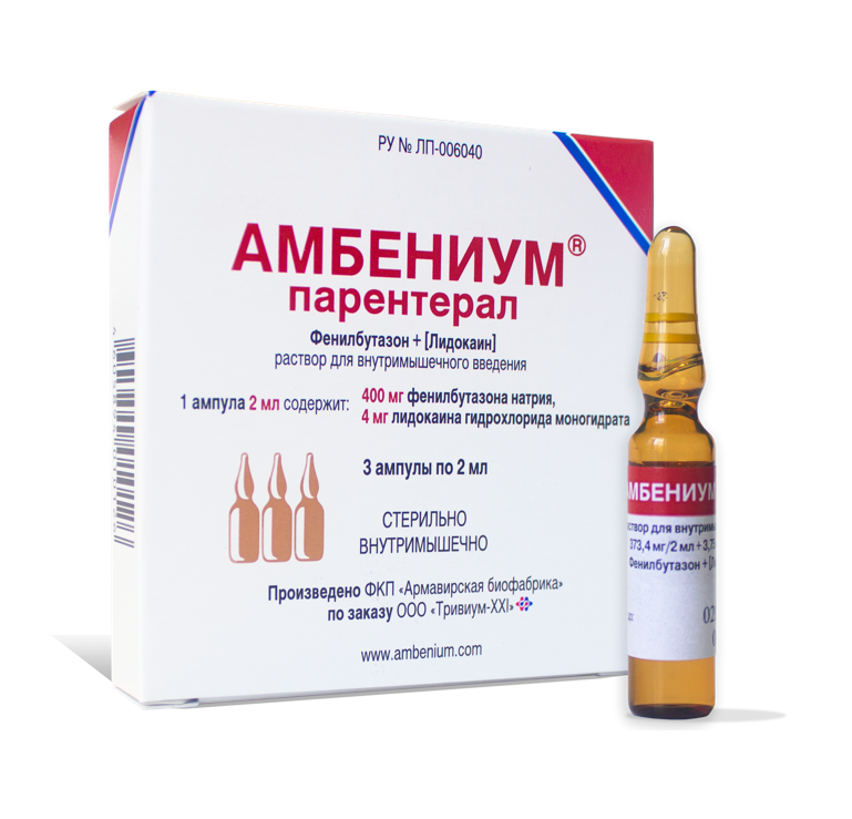 Амбениум парентерал раствор для внутримышечного введения 373,4мг/2мл + 3,75мг/2мл ампулы 2мл №3