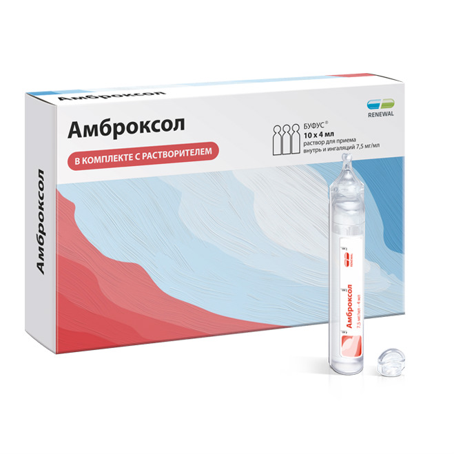 Купить Амброксол раствор для приёма внутрь и ингаляций 7,5мг/мл тюбик-капельница 4мл №10 (+раст-ль) по низкой цене
