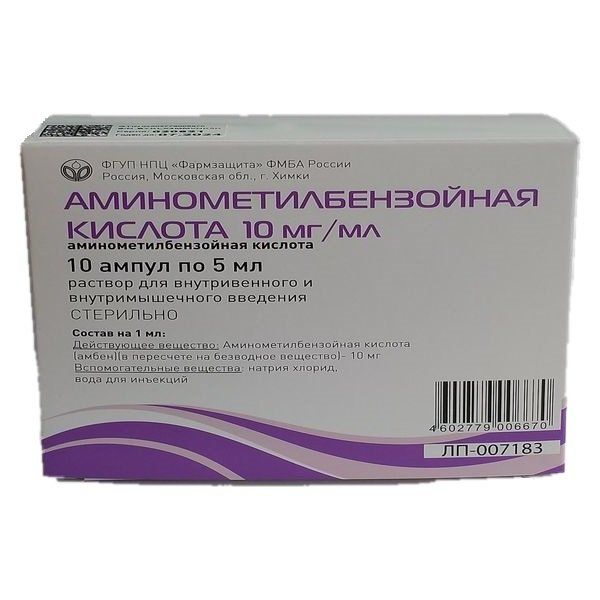 Аминометилбензойная кислота раствор для внутривенного и внутримышечного введения 10мг/мл ампулы 5мл №10