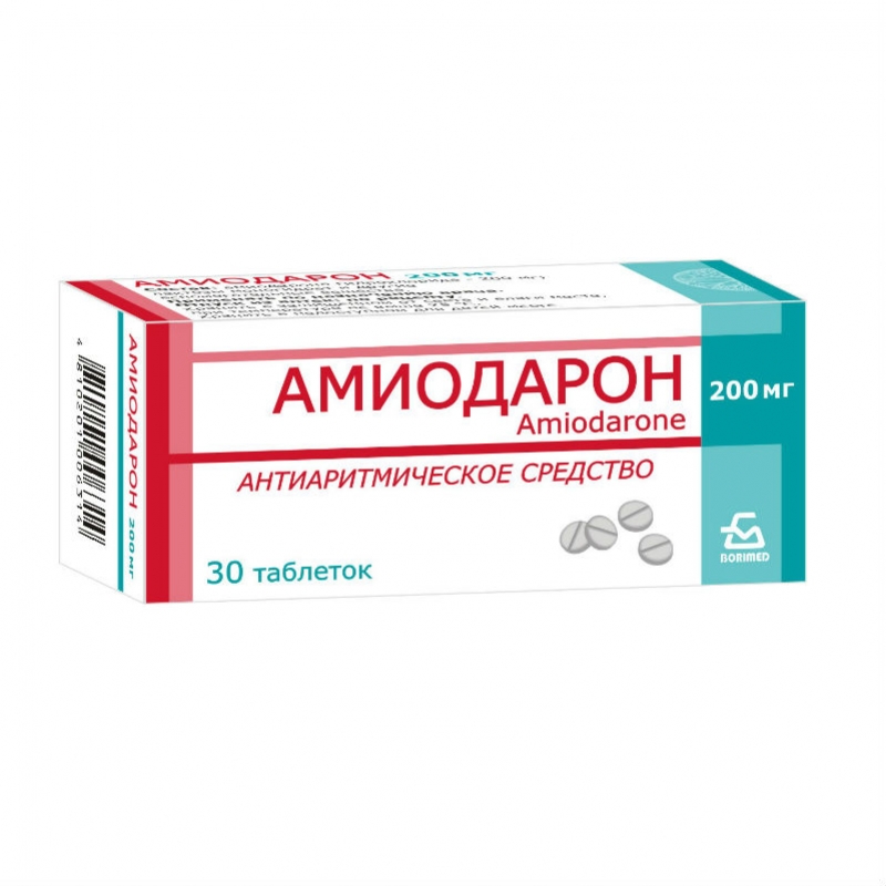 Активное вещество: амиодарона гидрохлорид в пересчёте на 100 % вещество — 200,00 мг