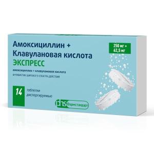 Амоксициллин+Клавулановая кислота Экспресс таблетки диспергируемые 250мг+62,5мг №14