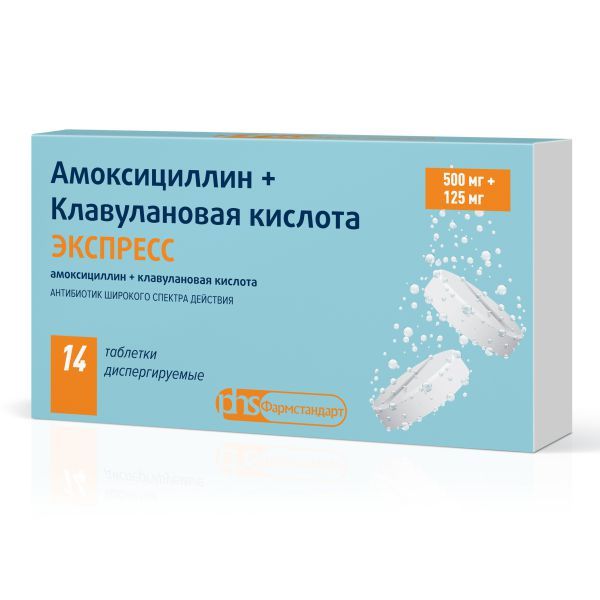 Амоксициллин+Клавулановая кислота Экспресс таблетки диспергируемые 500мг+125мг №14