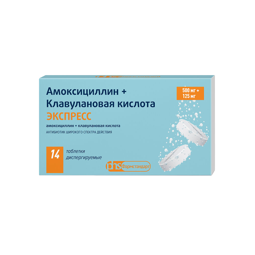 Амоксициллин клавулановая кислота экспресс таблетки диспергируемые 500мг+125мг №14