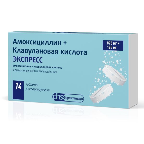Амоксициллин+Клавулановая кислота Экспресс таблетки диспергируемые 875мг+125мг №14