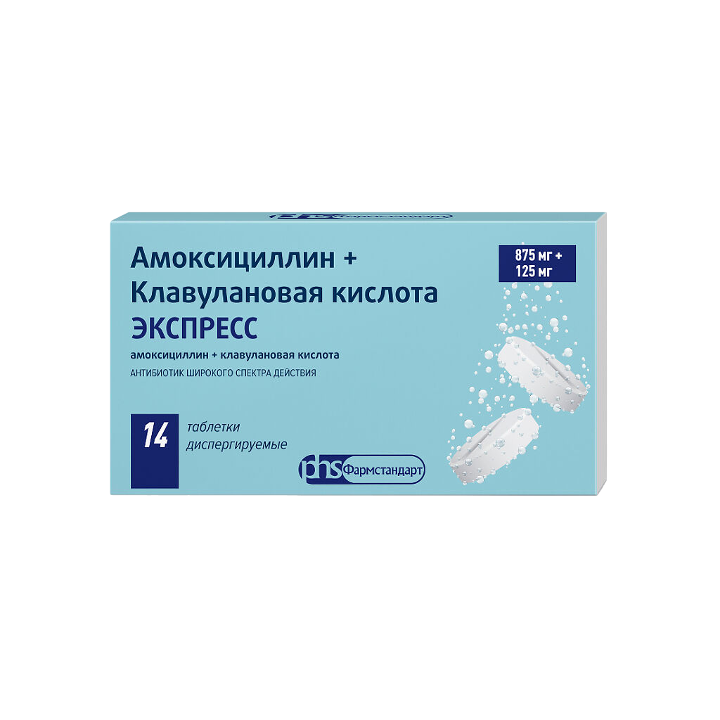 Амоксициллин клавулановая кислота экспресс таблетки диспергируемые 875мг+125мг №14