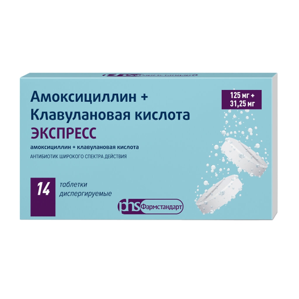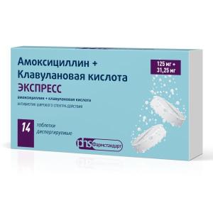 Амоксициллин+Клавулановая кислота Экспресс таблетки диспергируемые 125мг+31,25мг №14