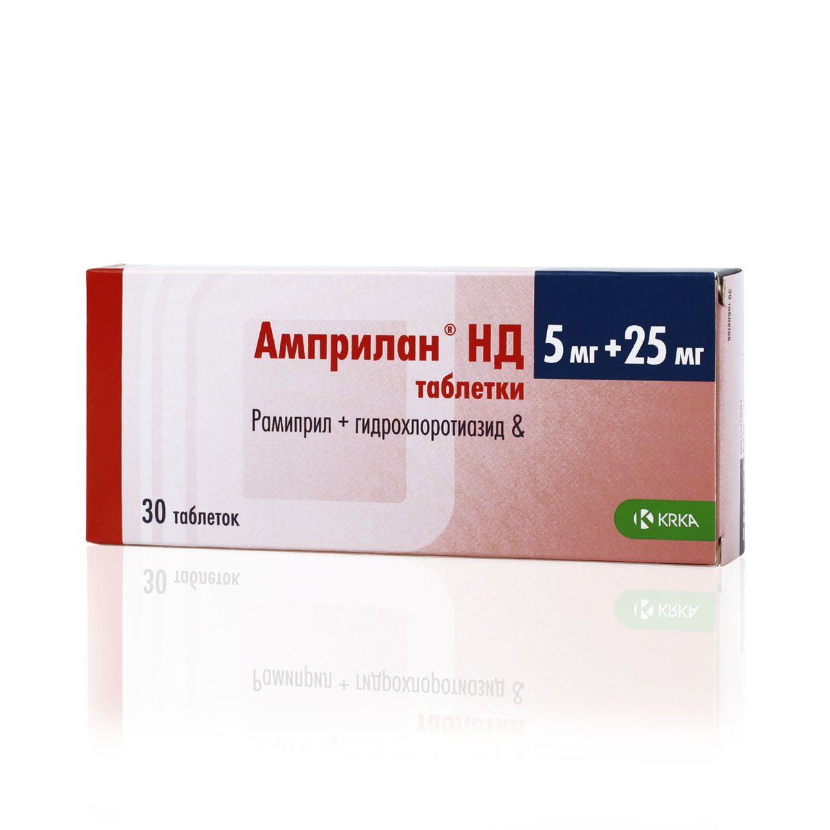 Активные вещества: рамиприл 5 мг, гидрохлоротиазид 25 мг.