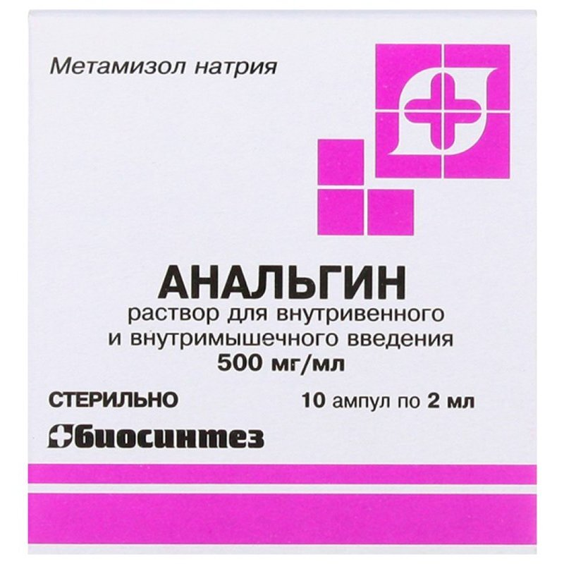 Анальгин раствор для внутривенного и внутримышечного введения 500мг/мл ампулы 2мл №10
