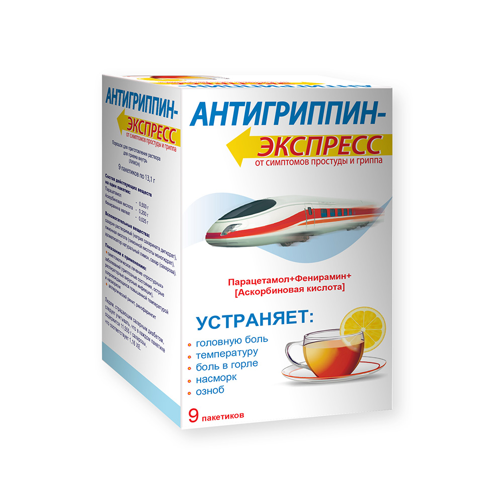 Антигриппин-Экспресс порошок для приготовления раствора для приёма внутрь лимон пакетики 13,1г №9