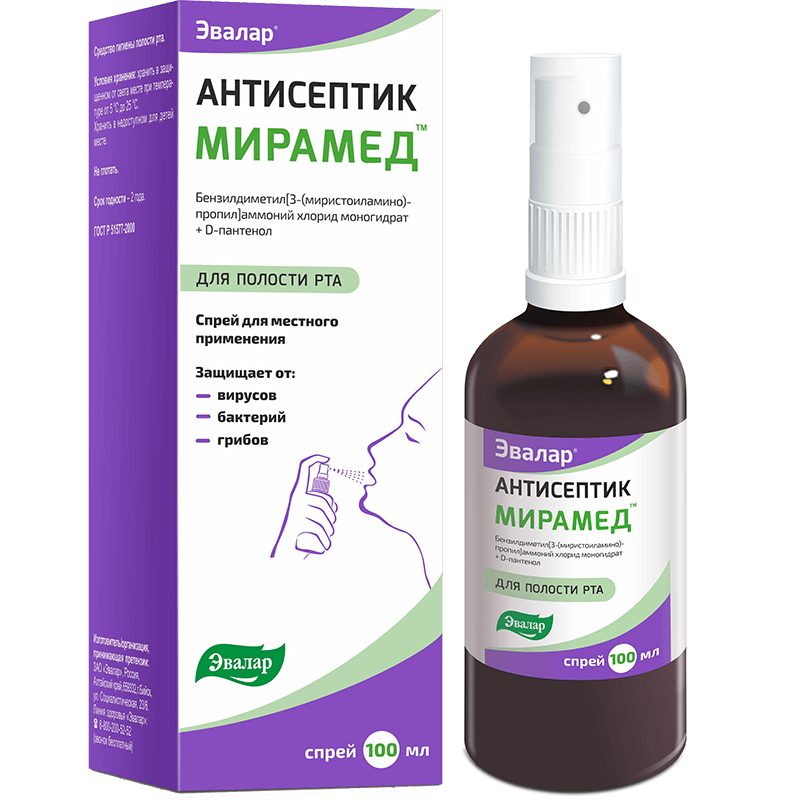 Мирамед - современное антисептическое антимикробное и противовоспалительное средство для гигиены полости рта, отвечающее всем требованиям эффективности и безопасности.