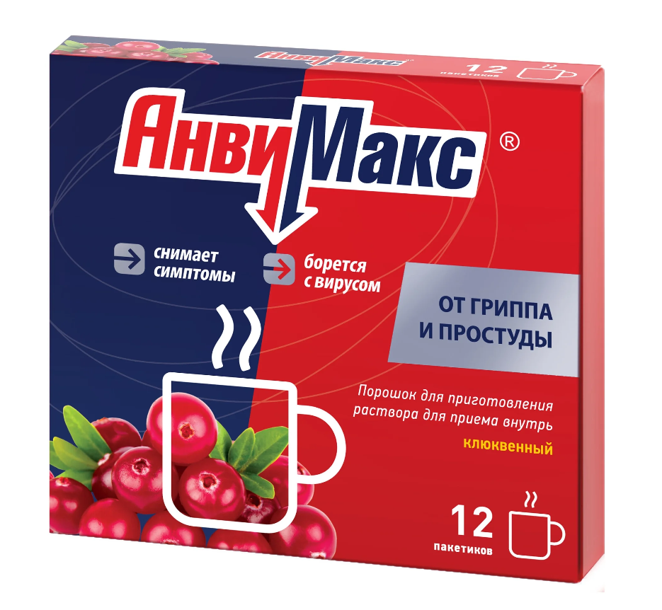 АнвиМакс порошок для приготовления раствора для приёма внутрь клюквенный пакетики 5г №12