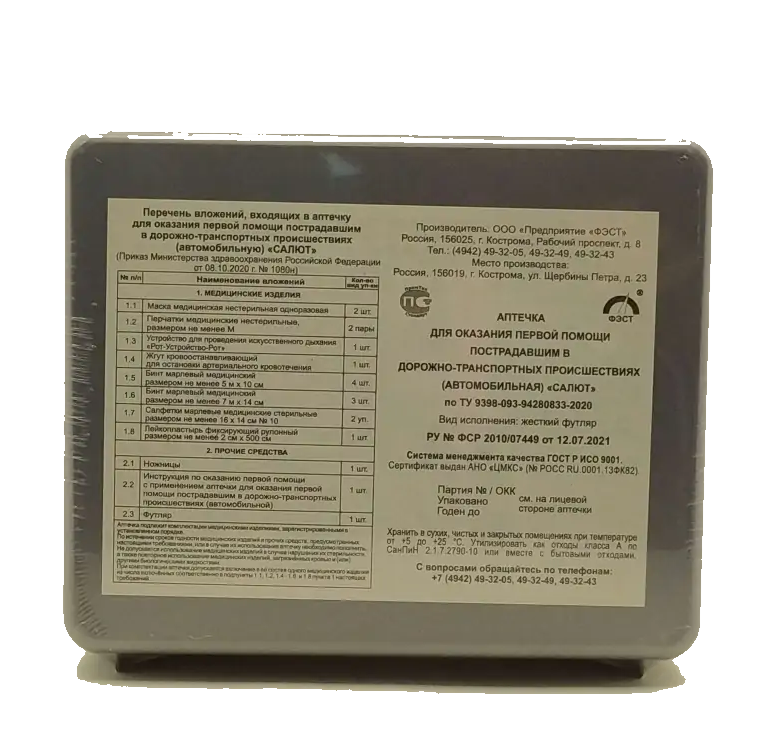 Аптечка первой помощи автомобильная ФЭСТ Салют по ТУ 9398-093-94280833-2020 /футляр 2пм/