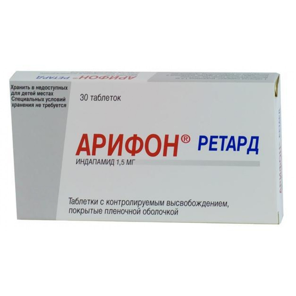 Арифон ретард таблетки с контролируемым высвобождением покрытые плёночной оболочкой 1,5мг №30