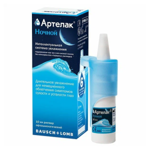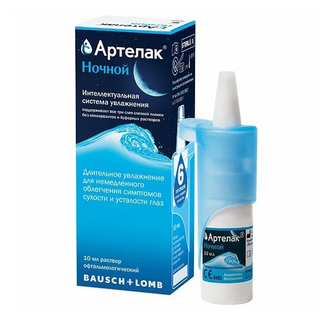 Артелак® ;Ночной – средство для сохранения здорового состояния поверхности глаза, распределяется на поверхности и обеспечивает интенсивное увлажнение для немедленного и длительного облегчения симптомов. Это идеальный продукт для любого потребителя, страдающего от таких симптомов сухости глаз, как усталость, раздражение, жжение и/или слезоточивость.