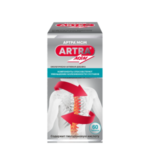 С возрастом, синтез глюкозамина и хондроитина ухудшается, а такой важный элемент как МСМ (метилсульфонилметан – природный источник серы) поступает в организм в ничтожных количествах. Хондроитин и глюкозамин играют важнейшую роль в восстановлении соединительной ткани, улучшают амортизационные свойства хряща, увеличивают подвижность суставов. Артра® МСМ содержит высокие концентрации глюкозамина, хондроитина, гиалуроновой кислоты и метилсульфонилметана (МСМ), которые в комбинации обладают синергическим эффектом, дополняя и усиливая эффекты друг друга.