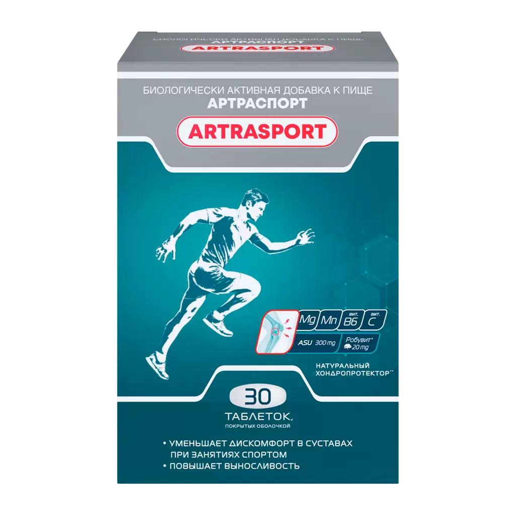 Биологически активная добавка к пище Артраспорт – содержит компоненты, которые способствуют уменьшению скованности движения, улучшению функции сустава. Артраспорт усилен антиоксидантами, которые повышают тренировочный эффект и особенно хорошо может подойти людям, активно занимающимся спортом.