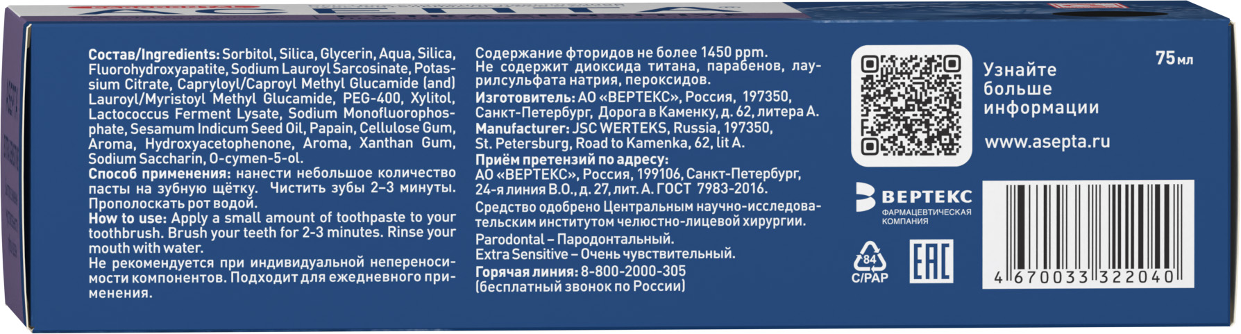 АСЕПТА EXTRA SENSITIVE (ЭКСТРА СЕНСИТИВ) - профилактическая зубная паста.