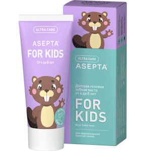 - Вкусная зубная паста ASEPTA Kids с популярным у детей вкусом «Бабл гам» поможет сформировать у ребенка полезную привычку заботиться о гигиене полости рта каждый день.
