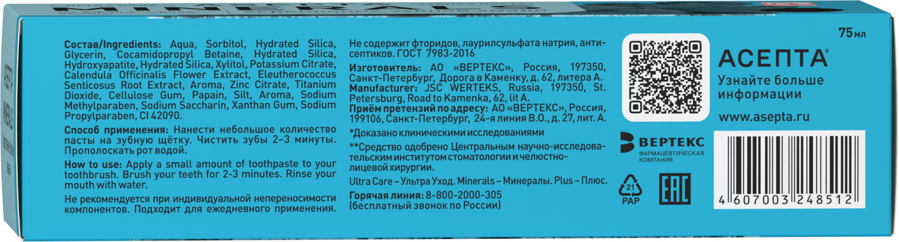 Сколько стоит Асепта Плюс Реминерализация профессиональная зубная паста туба 75мл - цена и отзывы