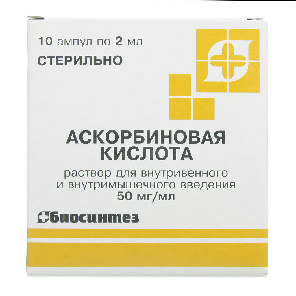 Аскорбиновая кислота раствор для внутривенного и внутримышечного введения 50мг/мл ампулы 2мл №10