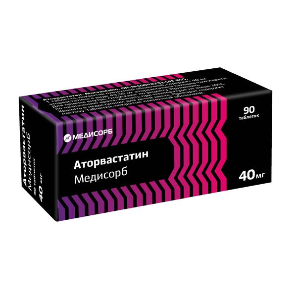 Аторвастатин Медисорб таблетки покрытые плёночной оболочкой 40мг №90