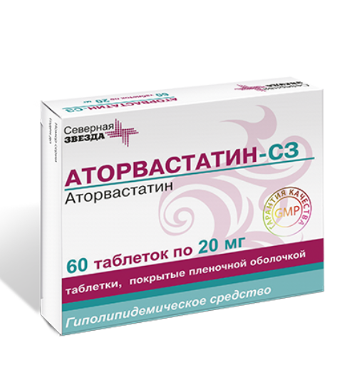 Аторвастатин-СЗ таблетки покрытые плёночной оболочкой 20мг №60
