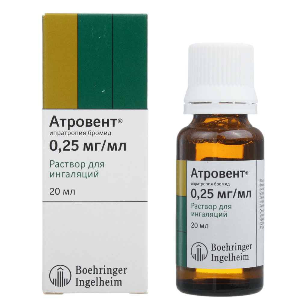 1,0 мл (20 капель = 0,25 мг) возможны повторные назначения до стабилизации состояния пациента. Интервал между ингаляциями определяется врачом. АТРОВЕНТ® может применяться совместно с ингаляционными β2-адреномиметиками.
