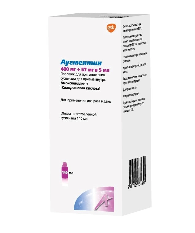 Аугментин порошок для приготовления суспензии для приёма внутрь 400мг+57мг/5мл флакон 25,2г