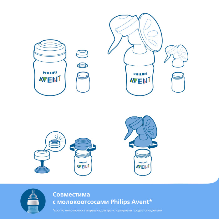 Растет вместе с вашим малышом. Благодаря тому, что молокоотсосы, бутылочки и чашки совместимы друг с другом, вы можете приспосабливать продукт к потребностям малыша.
