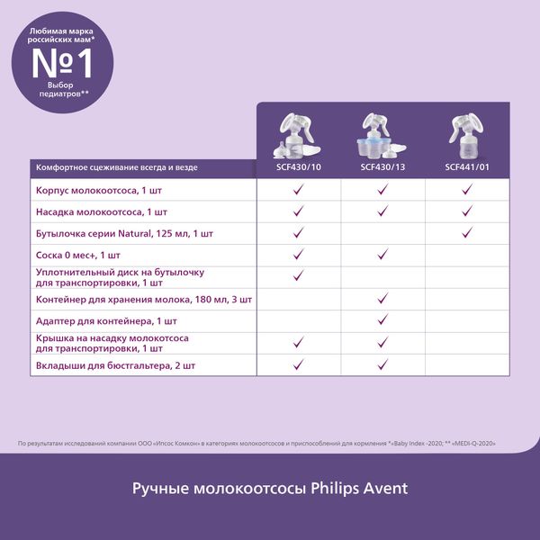 АВЕНТ МОЛОКООТСОС РУЧНОЙ SCF430/10 - разработан с учетом понимания принципов сосания ребенка, размеров и форм груди, поэтому обеспечивает естественное и бережное сцеживание. Универсальная насадка молокоотсоса адаптируется под любую форму и размер соска и подходит 99% мам.