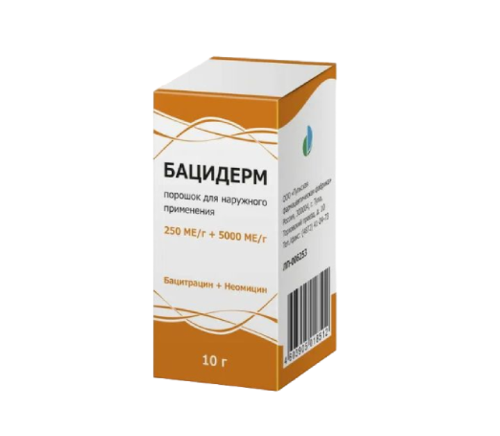 Бацидерм порошок для наружного применения 250МЕ/г+5000МЕ/г флакон 10г