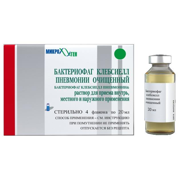 Бактериофаг клебсиелл пневмонии очищенный раствор для приёма внутрь, местного и наружного применения флакон 20мл №4