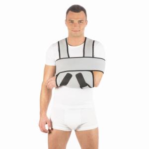 - состоит из муфты для оптимального размещения верхней конечности в функционально выгодном положении и съемного. пояса для надежной фиксации верхней конечности к туловищу.