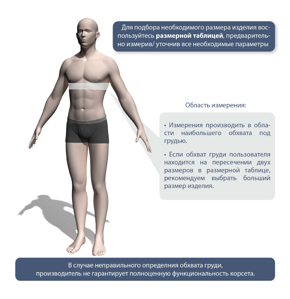 В случае неправильного определения обхвата груди, производитель не гарантирует полноценную функциональность корсета.
