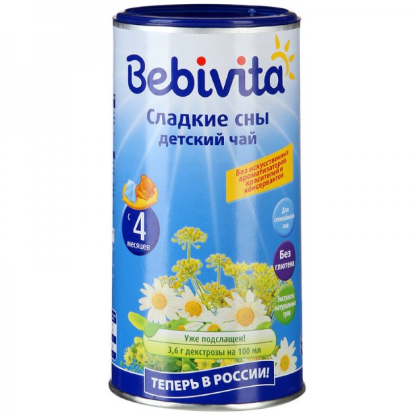 Чай детский Bebivita Сладкие снысоздан с учетом всех особенностей растущего организма и рекомендуется детям с 4 месяцев в качестве лёгкого успокаивающего средства для хорошего сна. Чай с экстрактами фенхеля, ромашки и липового цвета обладает приятным вкусом и мягким противовоспалительным и потогонным действием. Экстракты натуральных трав помогают уменьшить метеоризм, нормализовать сон, снять возбужденное состояние.