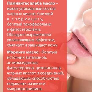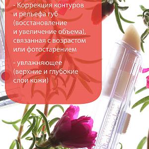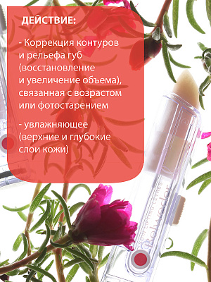 Увлажняет и смягчает кожу губ. Способствует восстановлению объема. уменьшает исчерченность (морщинки). Устраняет сухость и дискомфорт.
