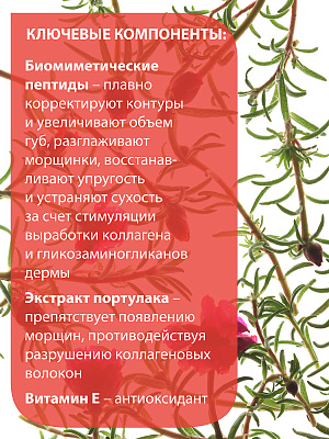 - Биомиметические пептиды – плавно корректируют контуры и увеличивают объем губ, разглаживают морщинки, восстанавливают упругость и устраняют сухость за счет стимуляции выработки коллагена и гликозаминогликанов дермы. Обладают высокой проникающей способностью.
