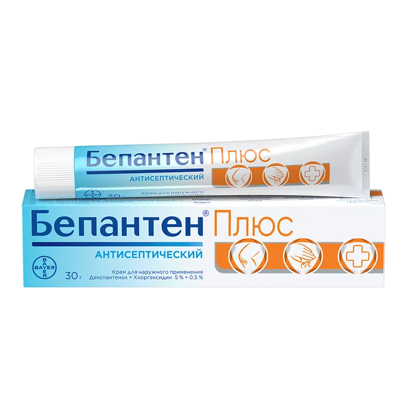 Бепантен® Плюс содержит хлоргексидин - антисептик, который активен против бактерий, имеющихся обычно на коже или попавших на кожу в результате загрязнения раны.